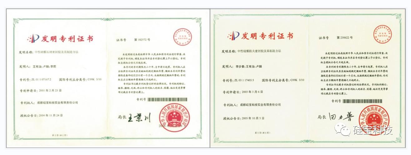 当社は現在、米国と日本の発明特許4件を含む286件の特許を保有しており、発明特許総数の70%以上を占めています。また、中国の知的財産分野における最高の栄誉である「中国特許賞」を受賞しました。同時に、当社は特許をはじめとする知的財産権の配置と運用を非常に重視し、積極的に市場変革を推進しています。当社は、業界で初めて難燃性シリコーンシーラント、中性シリコーン石材用接着剤などの高品質特許を出願し、最初に特許権を取得し、大きな社会的・経済的利益を生み出しました。